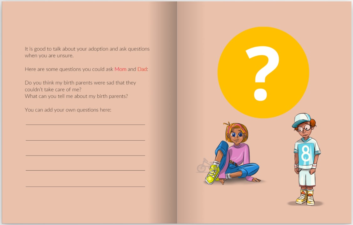 In many adoption books there is minimal information about the birth parents. This story tries to capture information, to the extent possible, about birth parents in the life of an adoptee. Even though your child has no contact with their birth parents, they may be wondering or worrying about them.