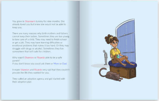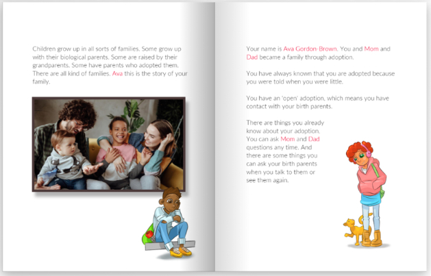 In many adoption books there is minimal information about the birth parents. This story tries to capture information about birth parents in the life of an adoptee. Most importantly, the book encourages a child’s questions and concerns so that they can be discussed and answered. It is important that your child understands where they come from and that it is okay to talk about their birth parents.