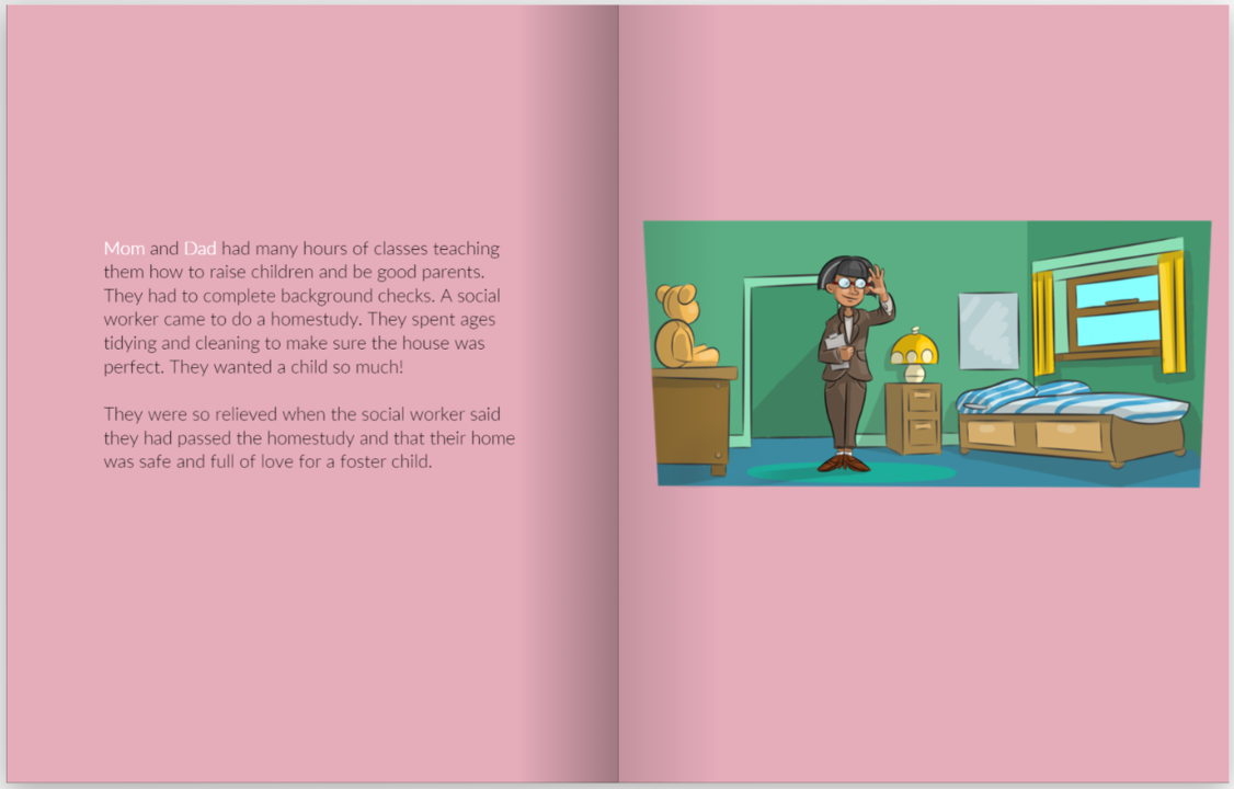 This book aims to encourage openness. Advice is, don’t wait for your child to ask questions. It’s very common for children not to ask questions, particularly about their birth parents. This can be because they don’t know to ask, or what to ask about, or because they don’t want to hurt their foster/adopting parents’ feelings. Each time you read this book with your child encourage them to ask you questions.