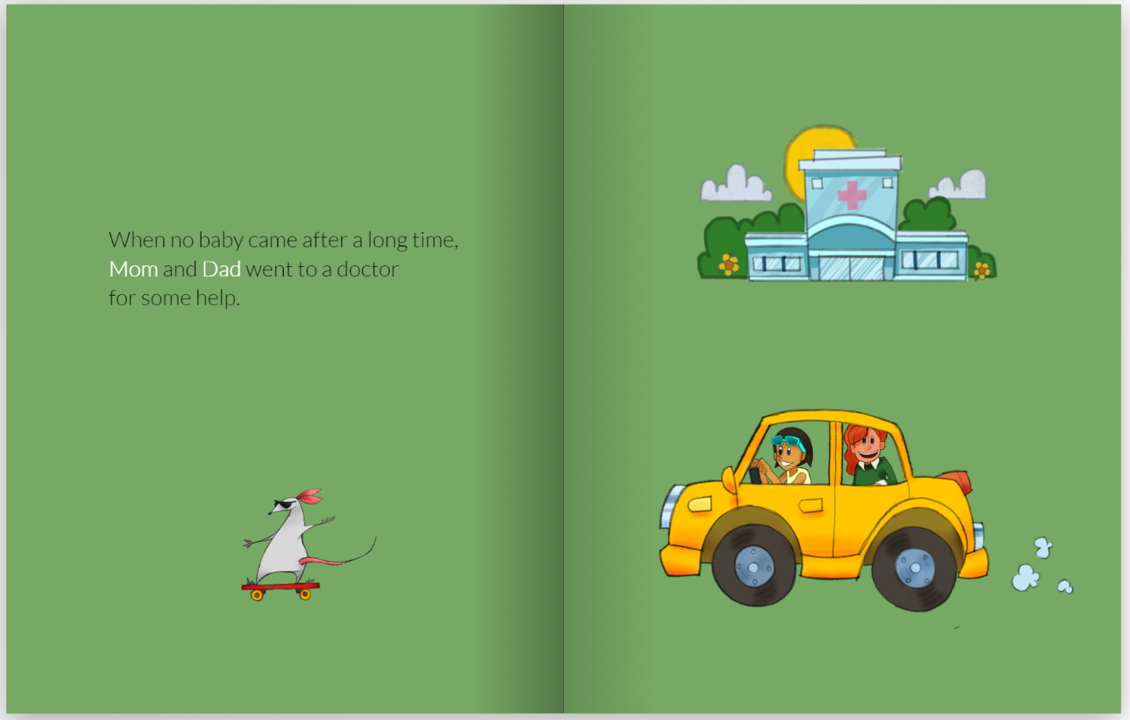 You customize your book – moving around clipart if you wish, adding photos and editing any of the text so that it is not just a story about surrogacy, it is your own story.